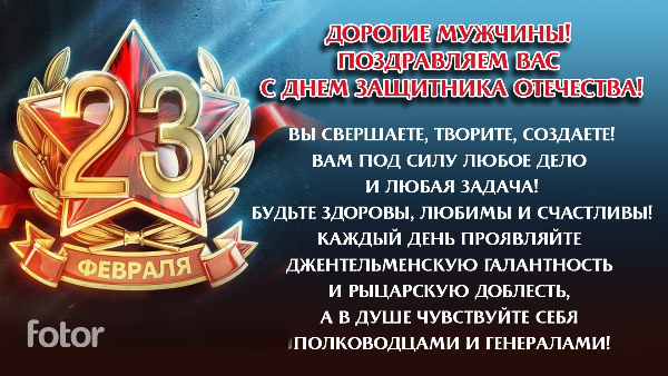 ДОРОГИЕ МУЖЧИНЫ! ПОЗДРАВЛЯЕМ ВАС С ДНЕМ ЗАЩИТНИКА ОТЕЧЕСТВА!